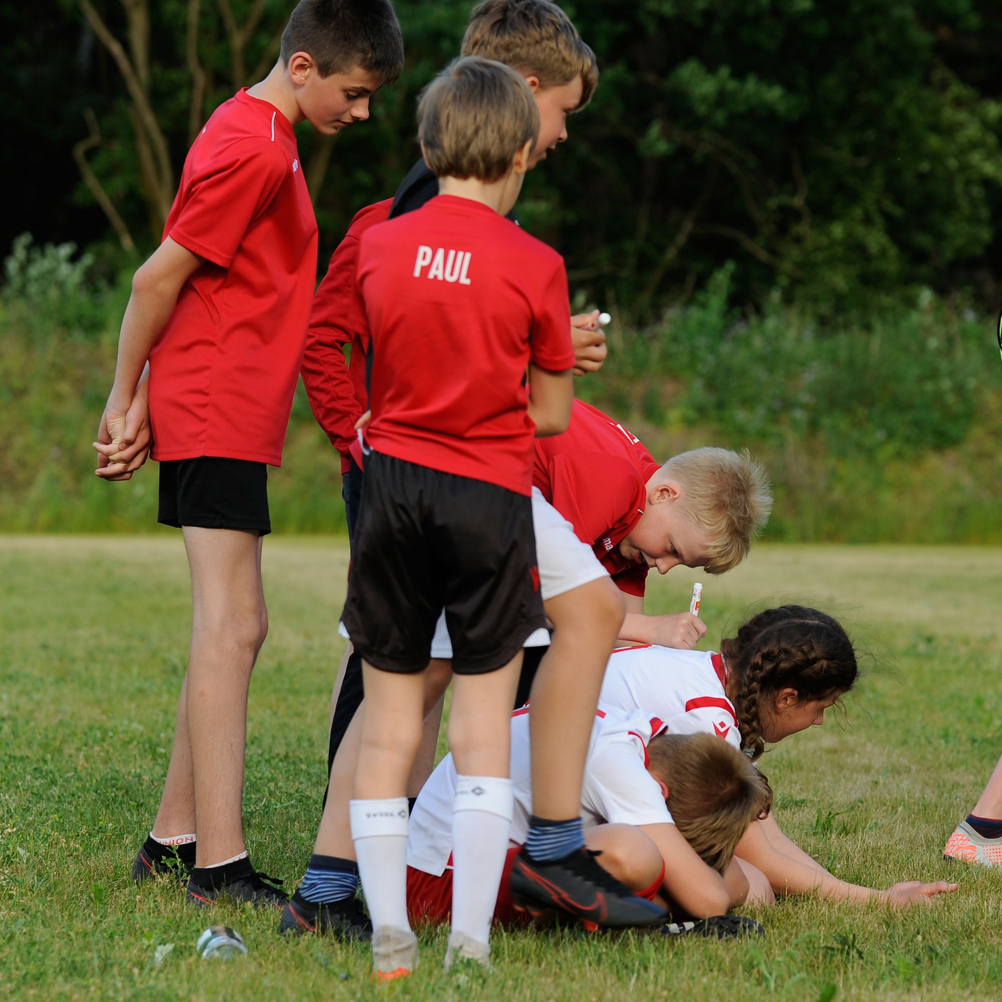 Die Erwachsenen organisierten sich zusätzliche Verstärkung. Es kamen weitere Elternteile dazu und so wagten Sie sich mit neuem Mut in einen weiteren sportlichen Vergleich mit den Kindern. Bei unserem kleinen Fußballturnier konnten die Kinder zeigen, was im letzten Trainingsjahr so auf dem Trainingsplan stand. Finten, Entscheidungen treffen, Lücken entdecken, Lücken schließen. Aus Trainersicht war es eine große Freude dem Turnier zu folgen, auch wenn wir Erwachsenen ein weiteres Mal aus sportliches Sicht das Nachsehen hatten.