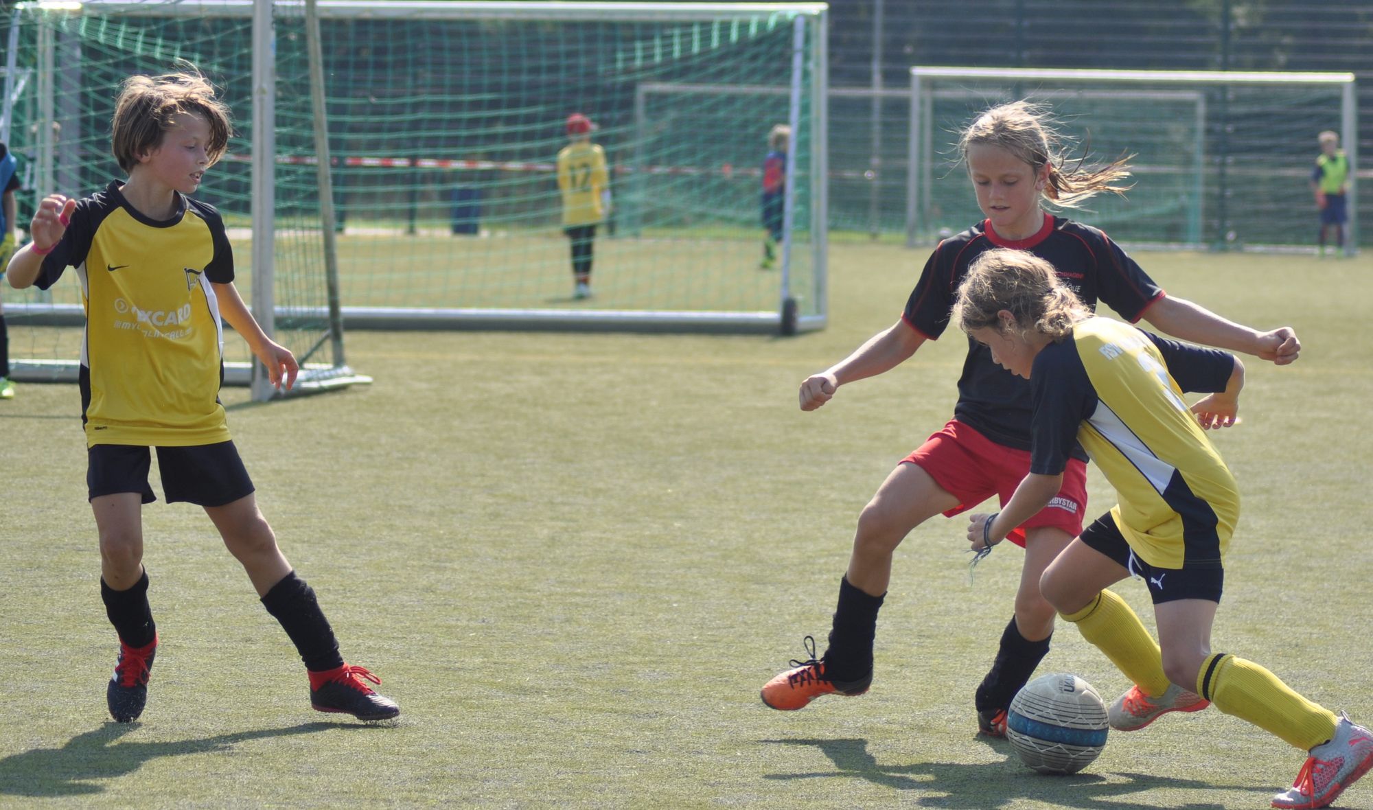 Jedes Kind hat deutlich mehr Ballkontakte als in einem normalen Ligaspiel im 7-gegen-7. Folglich ergeben sich auch mehr Erfolgserlebnisse und die Jungs und Mädels bleiben im wahrsten Sinne am Ball, egal ob Topspieler oder Anfänger. Im Vordergrund steht das spaßorientierte Fußballspielen, das Ausprobieren und das Fehler-machen-dürfen. Kein Kind muss am Spieltag zu Hause bleiben und jedes einzelne Kind hat sehr viele Ballkontakte, 1-gegen-1-Situationen, Dribblings und Torschüsse. Kaum ein Spieler verlässt ein Turnier ohne ein Tor geschossen zu haben. Natürlich werden Siege und Niederlagen von den Kids genauso gefeiert und bedauert, wie es woanders auch der Fall ist. Der Ehrgeiz geht also nicht verloren.